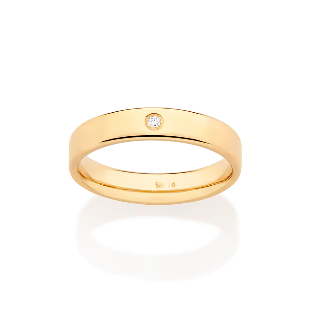 ALIANÇA LISA ANATÔMICA BANHADA A OURO 18K COM ZIRCÔNIA