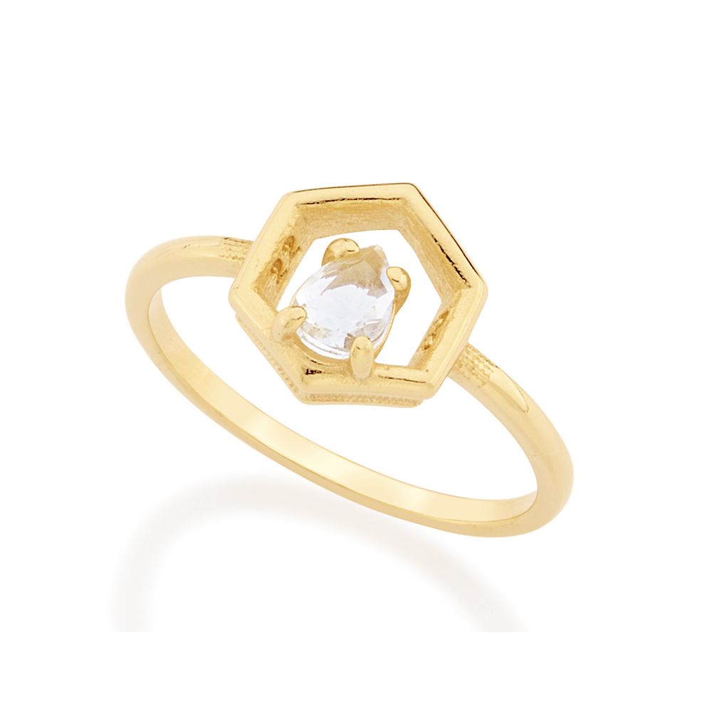 Anel com parte superior no formato de hexágono com cristal gota de 4x6mm.