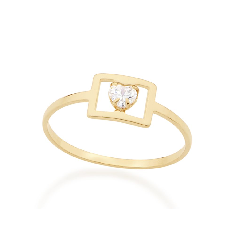 Anel com detalhe quadrado vazado e 1 zircônia coração de 4mm.