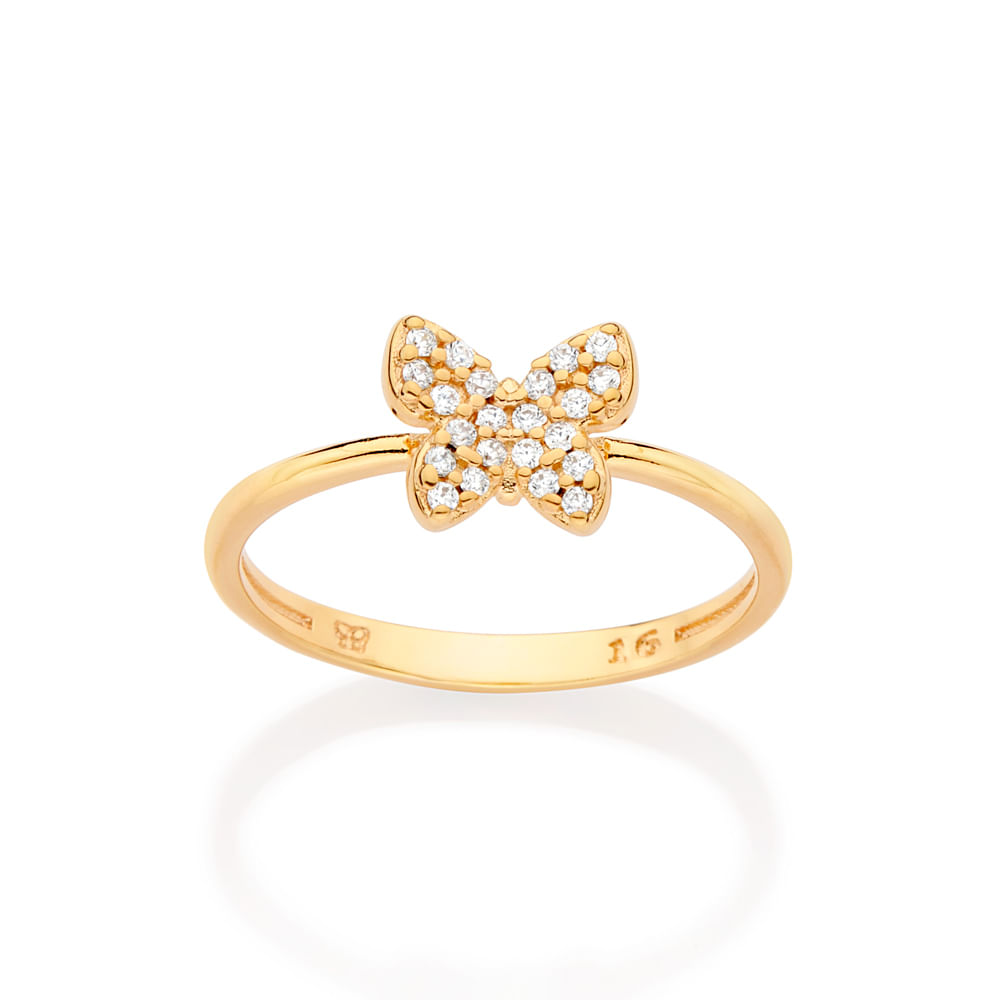 Anel skinny composto por uma borboleta cravejada por 22 zircônias de 1,00 m.