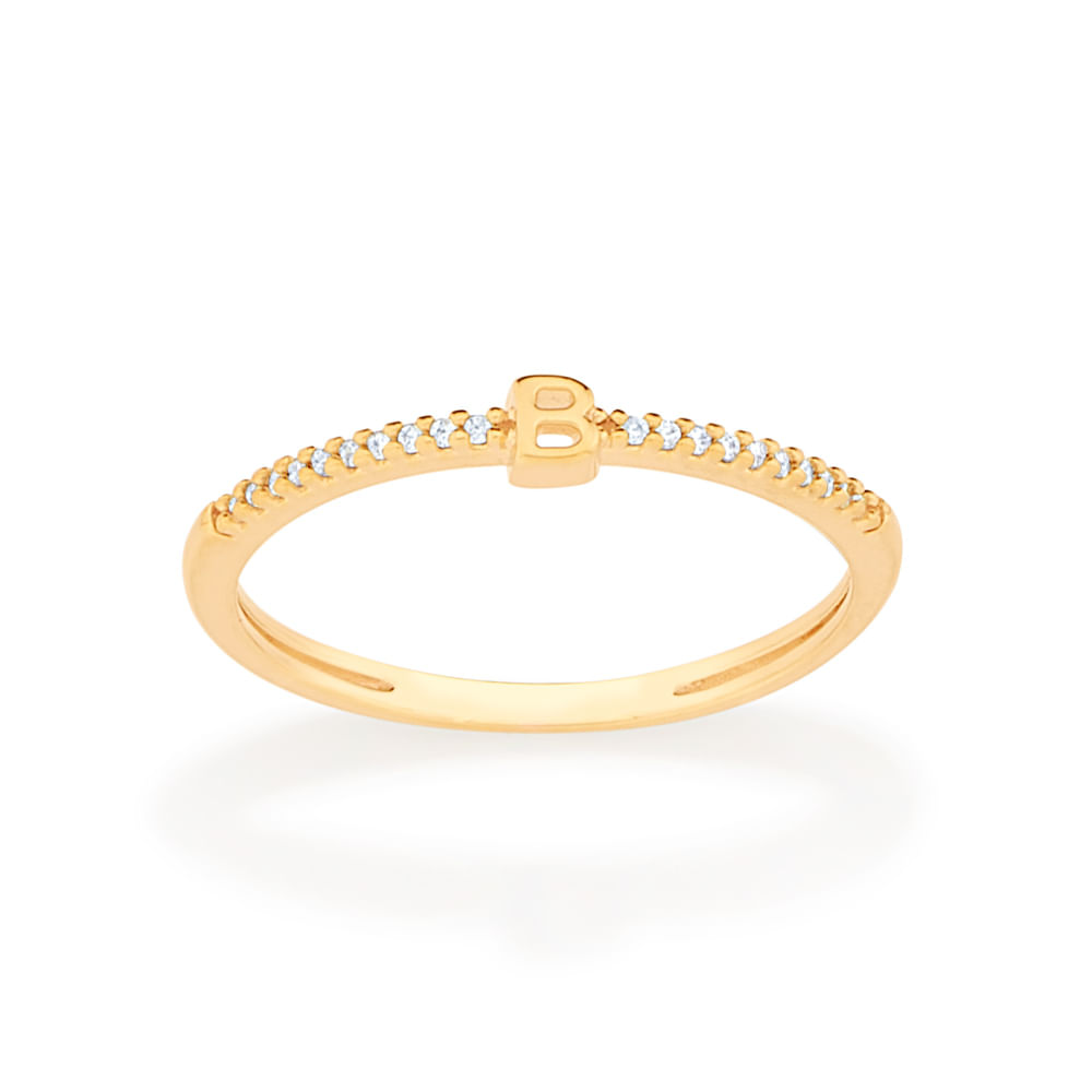 ANEL SKINNY LETRA BANHADO A OURO 18K COM ZIRCÔNIAS-LETRA B