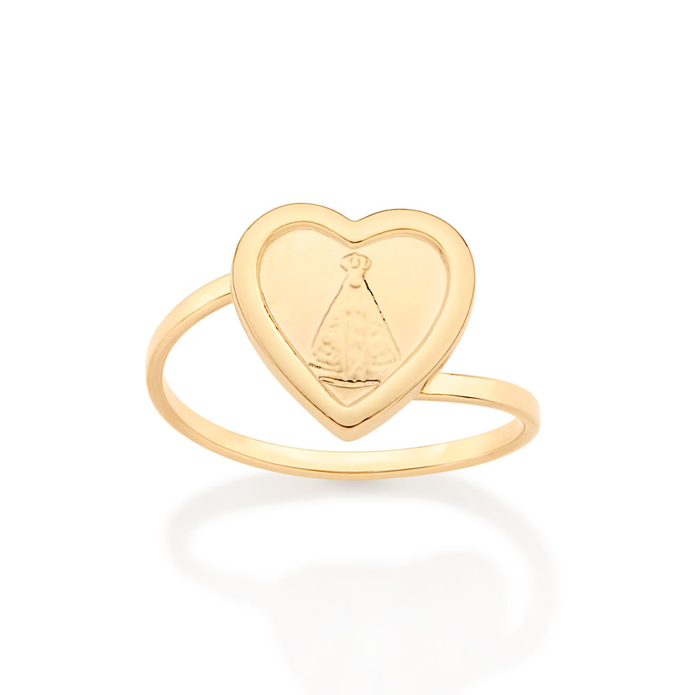Anel skinny coração com nossa senhora aparecida ao centro.