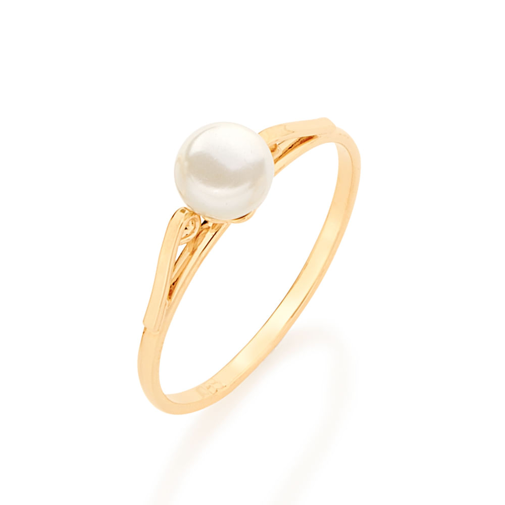 ANEL SOLITÁRIO BANHADO A OURO 18K COM PÉROLA SINTÉTICA