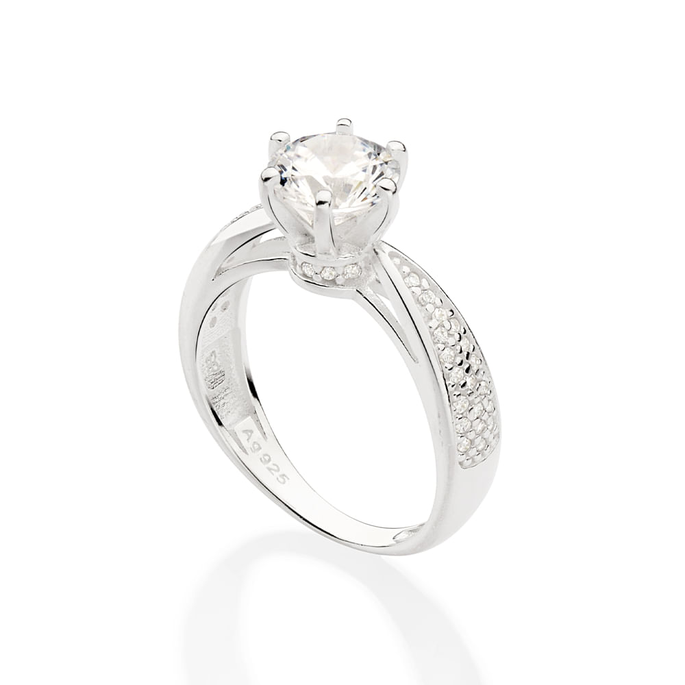 ANEL SOLITÁRIO DE PRATA MACIÇA 925 COM ZIRCÔNIAS