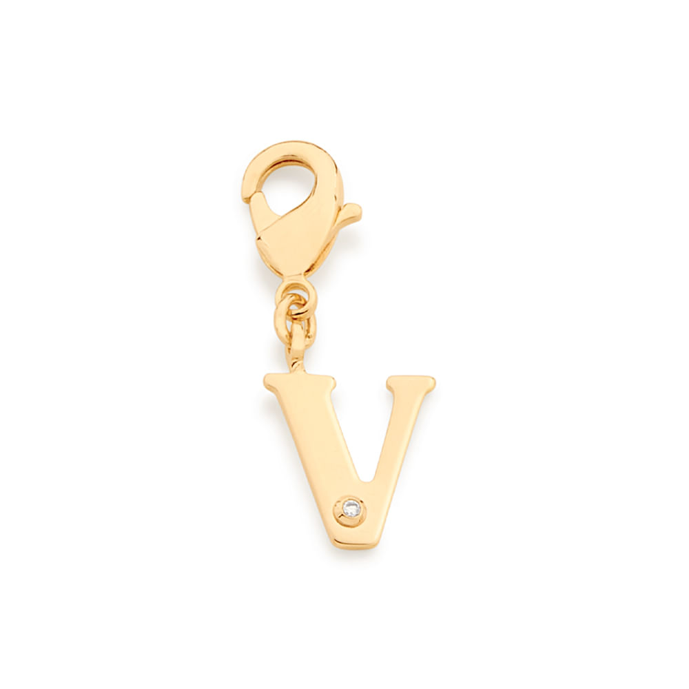 BERLOQUE LETRA BANHADO A OURO 18K COM ZIRCÔNIA-LETRA V - TAM.ÚNICO 5423940065