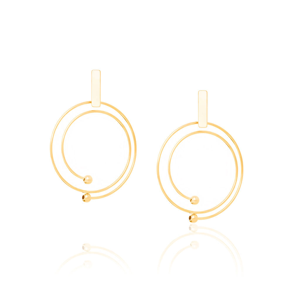 Brinco base retangulo com fio aspiral, formando circulos, com bolas nas pontas, med. 4,5 x 3,5
