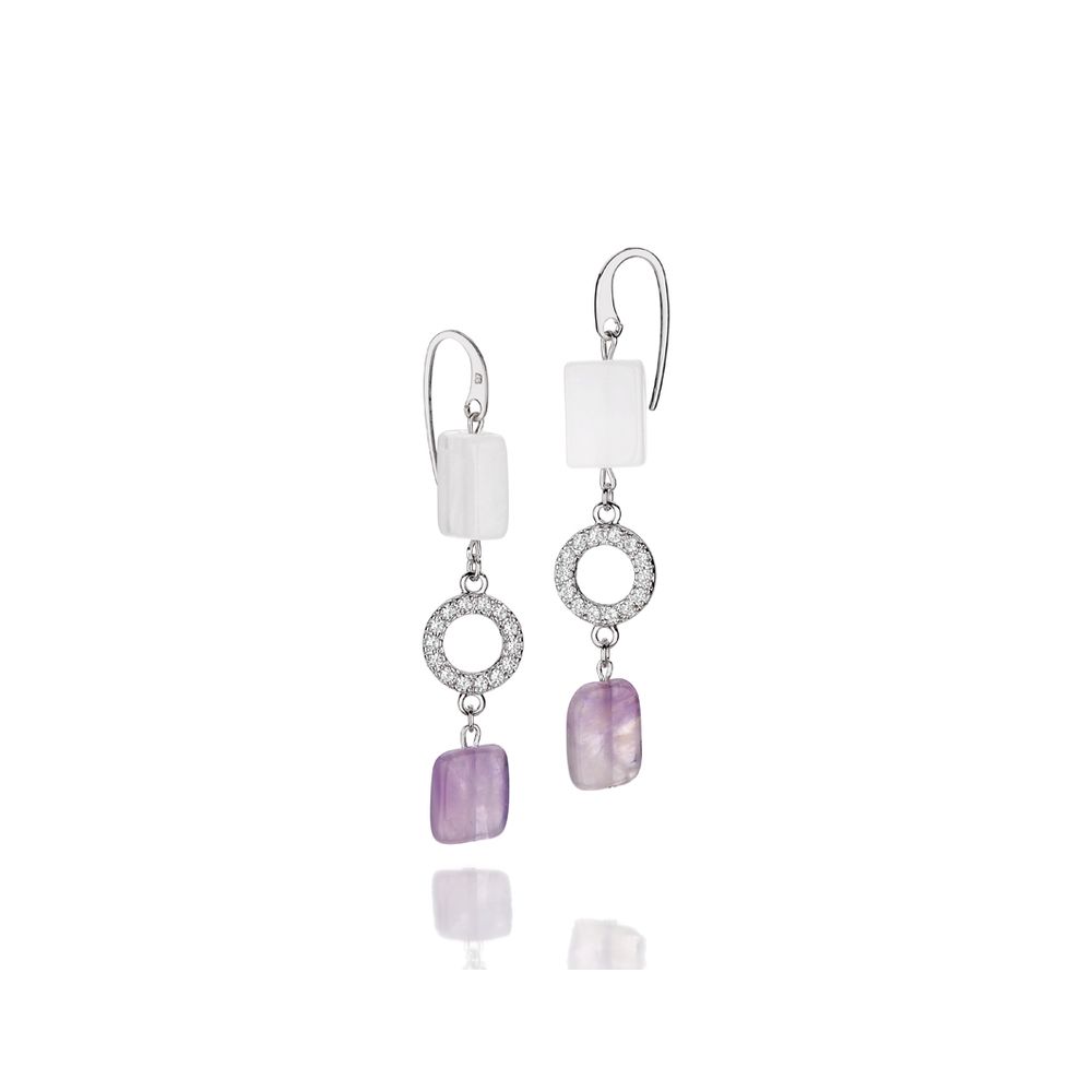 Brinco formado por pedras intercaladas por círculo cravejado por 28 zircônias (par).