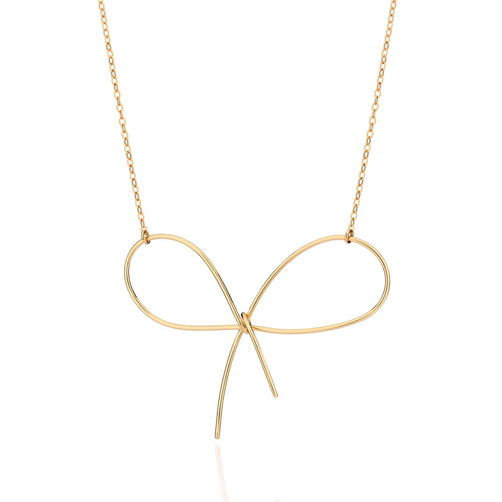 Gargantilha formada por corrente de elo cadeado fio 0,35 mm, com pingente laço vazado.