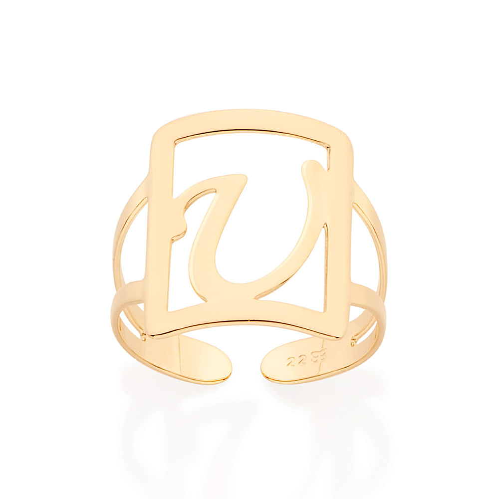 MAXI ANEL LETRA AJUSTÁVEL BANHADO A OURO 18K-LETRA U