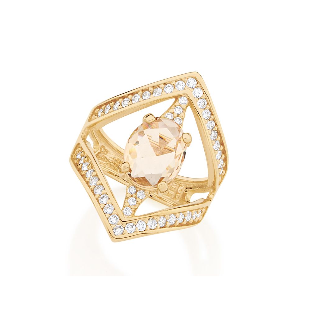 MAXI ANEL LOSANGO BANHADO A OURO 18K COM ZIRCÔNIAS E CRISTAL
