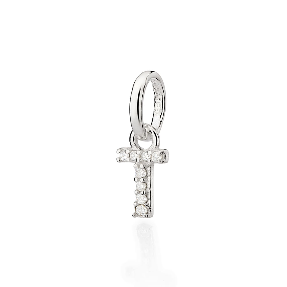 PINGENTE LETRA DE PRATA 925 COM ZIRCÔNIAS -LETRA T - TAM.ÚNICO 8401090063
