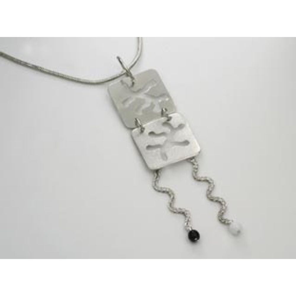 Pingente duas partes quadradas vazadas duas correntes penduradas e bolinha nas pontas