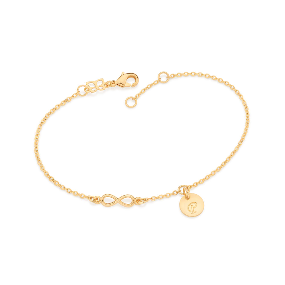 PULSEIRA INFINITO E LETRA BANHADA A OURO 18K -LETRA P - TAM.19 5520041959
